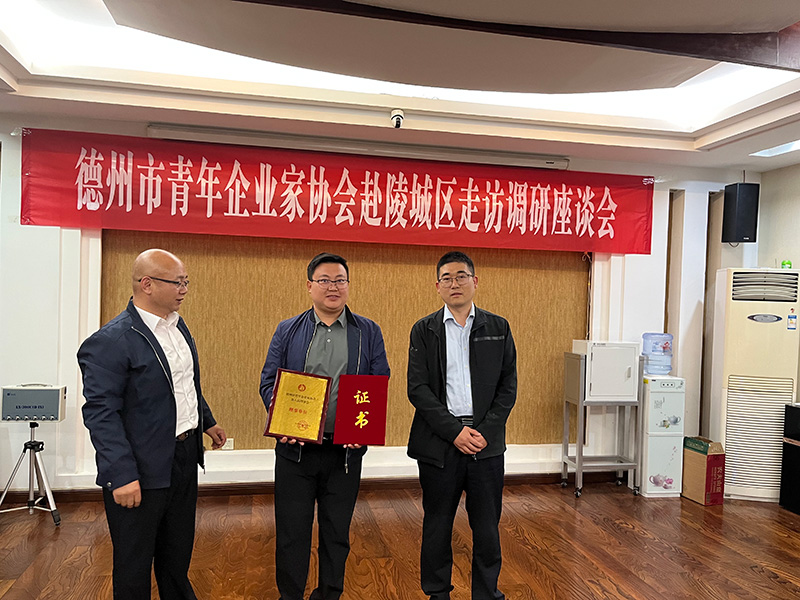 5月14日,德州市青年企業(yè)家協(xié)會代表來鑫鼎昊環(huán)保科技有限公司,參觀交流,并授予理事單位證書。