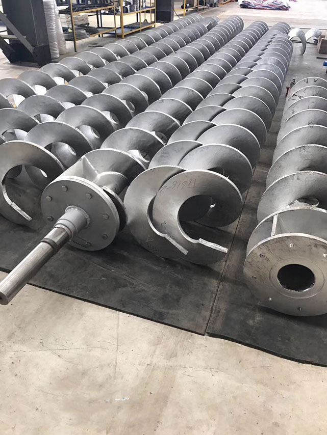 無(wú)軸螺旋輸送機(jī)與傳統(tǒng)有軸螺旋輸送機(jī)相比,由于采用了無(wú)中心軸、吊軸承設(shè)計(jì),利用具有一定柔性的整體鋼制螺旋推送物料,因而具有以下突出優(yōu)點(diǎn):